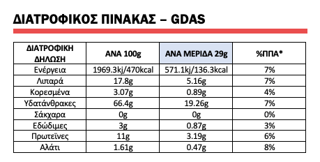 *Προσλαμβανόμενη ποσότητα αναφοράς ενός μέσου ενήλικα (8400kj/2000kcal)