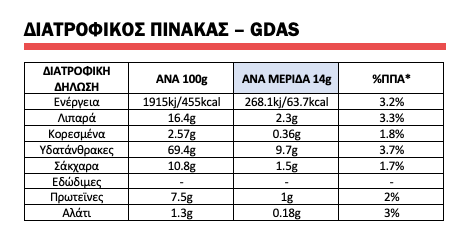 *Προσλαμβανόμενη ποσότητα αναφοράς ενός μέσου ενήλικα (8400kj/2000kcal)
